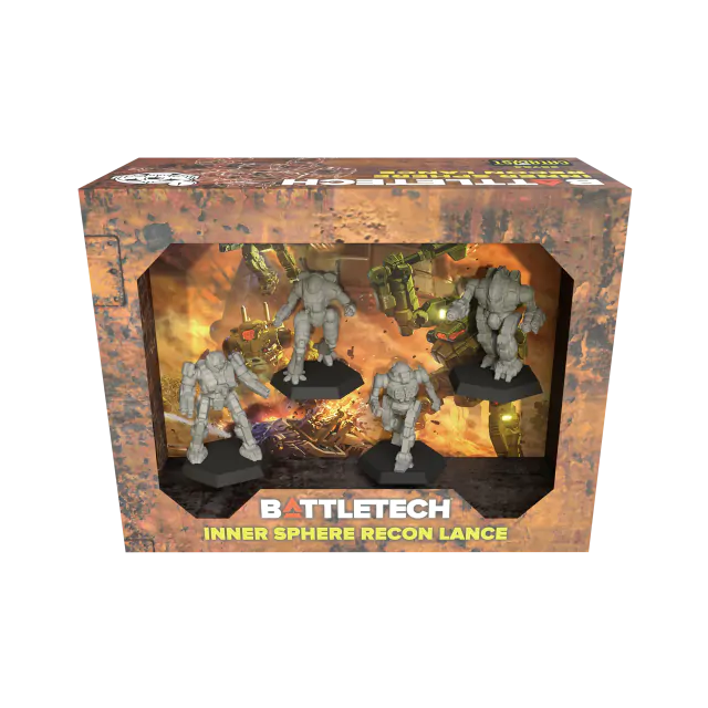 Our high-quality, affordable, read-to-play plastic miniatures ForcePacks are the heart and soul of BattleTech. Each re-imagined miniature retains the core of each 'Mech's identity grounded in the original artist expression and lore we all love, carefully updated with modern aesthetics. From Inner Sphere, choices are - Assault Lance, Battle Armor, Heavy Recon, Pursuit Lance, Recon Lance, and Security Lance. IS Assault Lance - Pillager, Goliath, Shogun, and Hopelite. IS Battle Armor - 4 squads of battle armor. IS Heavy Recon - Charger, Ostroc, Merlin, and Assassin. IS Pursuit Lance - Dervish, Cicada, Clint, and Hermes II. IS Recon Lance - Firestarter, Ostscout, Spector, and Javelin. IS Security Lance - JagerMech, Scorpion, Vulcan, and Whitworth.