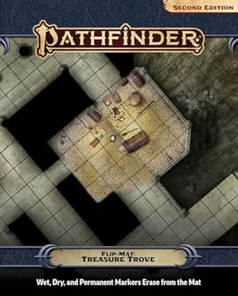 Pathfinder Flip-Mat: Treasure Trove measures 24" x 30" unfolded, and 8" x 10" folded. A Flip-Mat's coated surface can handle any dry erase, wet erase, or even permanent marker. Usable by experienced GMs and novices alike, Pathfinder Flip-Mats fit perfectly into any Game Master's arsenal!
